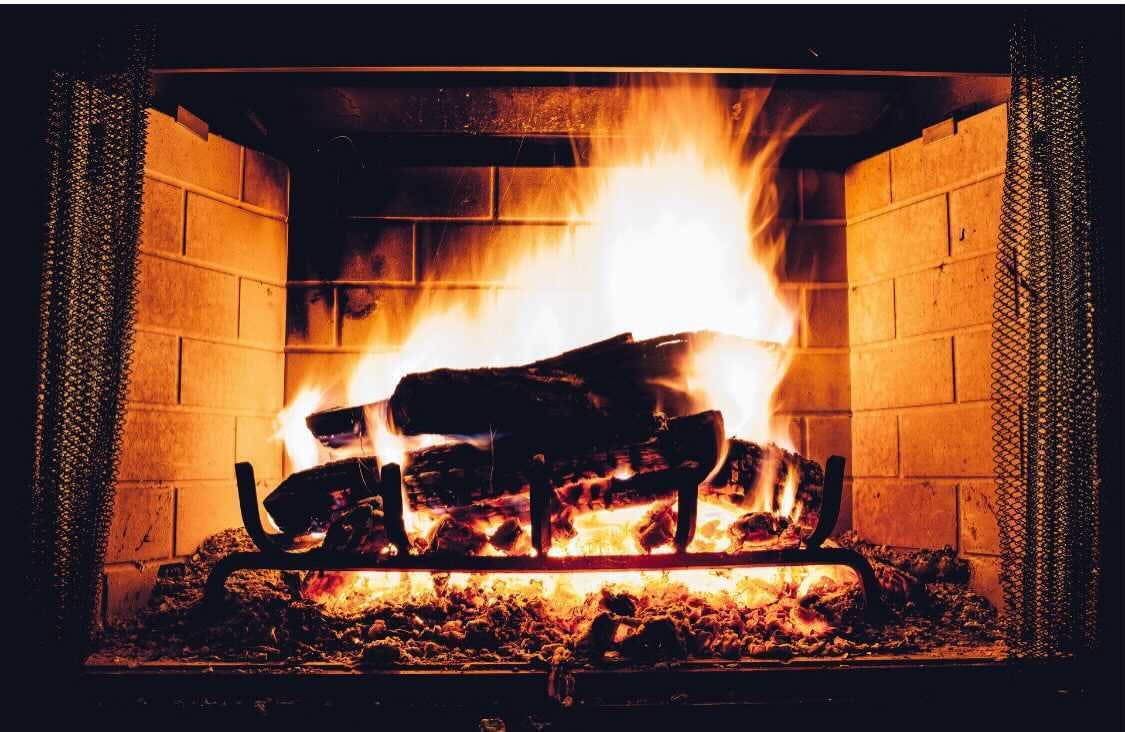 暖炉の火を見ながら過ごせるソファー席