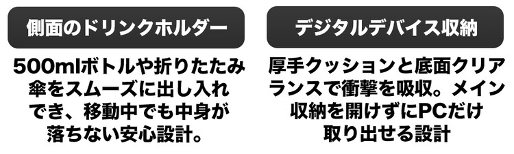 移動中の負担を減らし、空港やホテルでもスマートに行動できます。 CITY PACKは「長距離移動を快適にするための設計」をすべての構造に込めています。