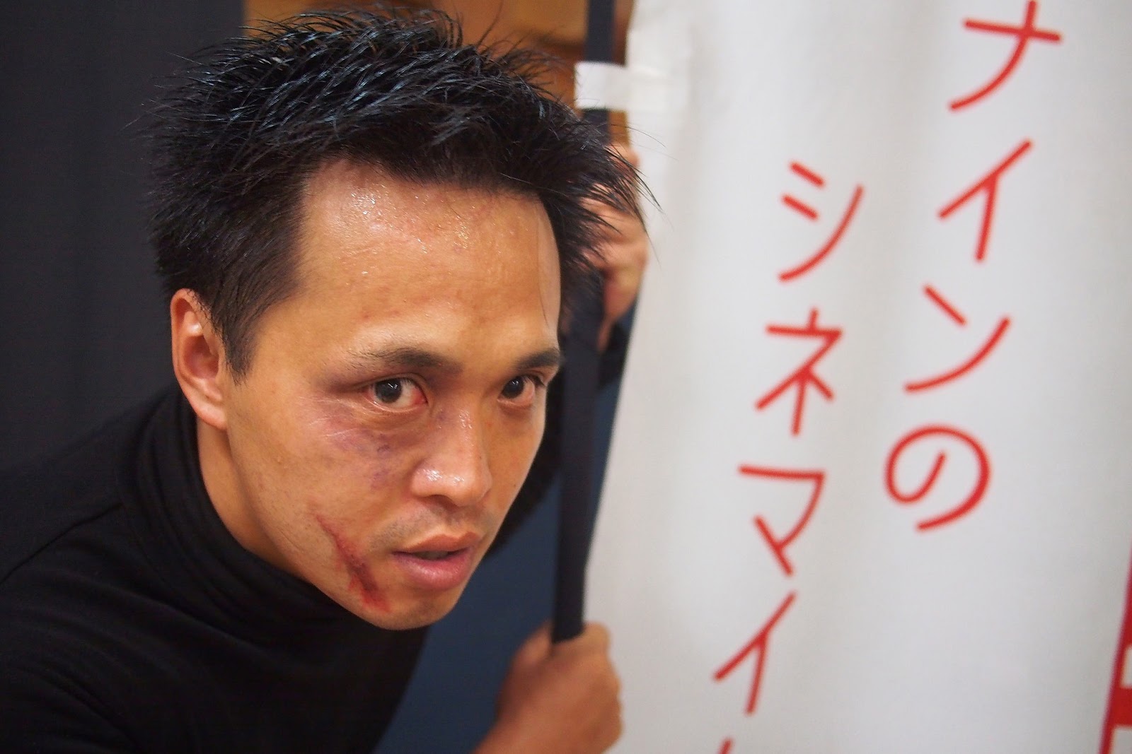 「右ほほを殴られて吹き飛ばされたときにすりむいた感じのペイントを」