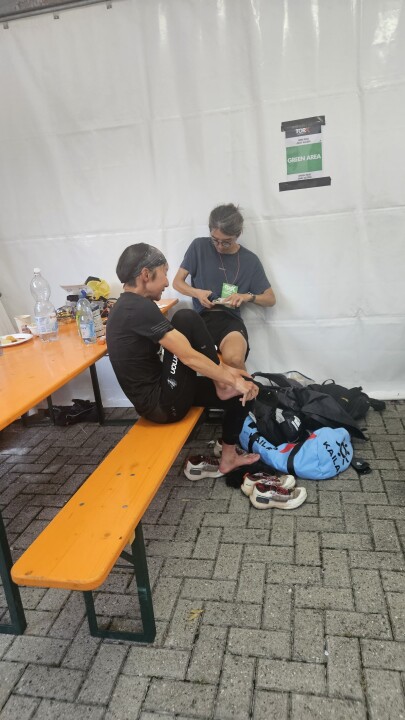 Then, at the support aid station called Greasony, just past the 280km mark, the moment I sat down to drink water, I started vomiting violently. It was my first time experiencing this, and I panicked.