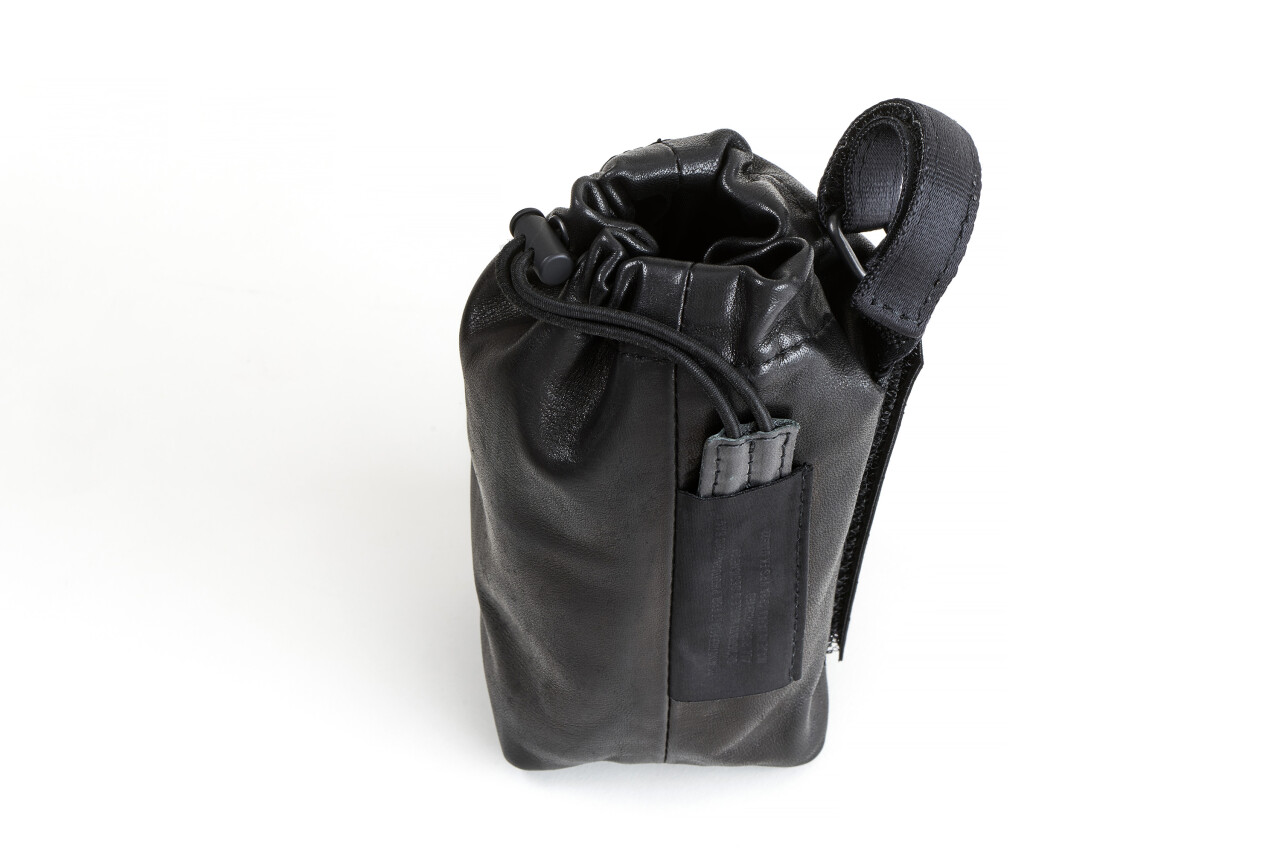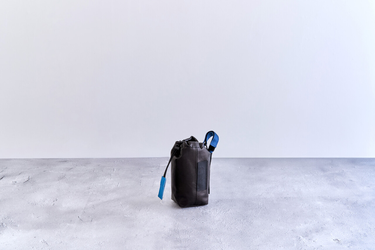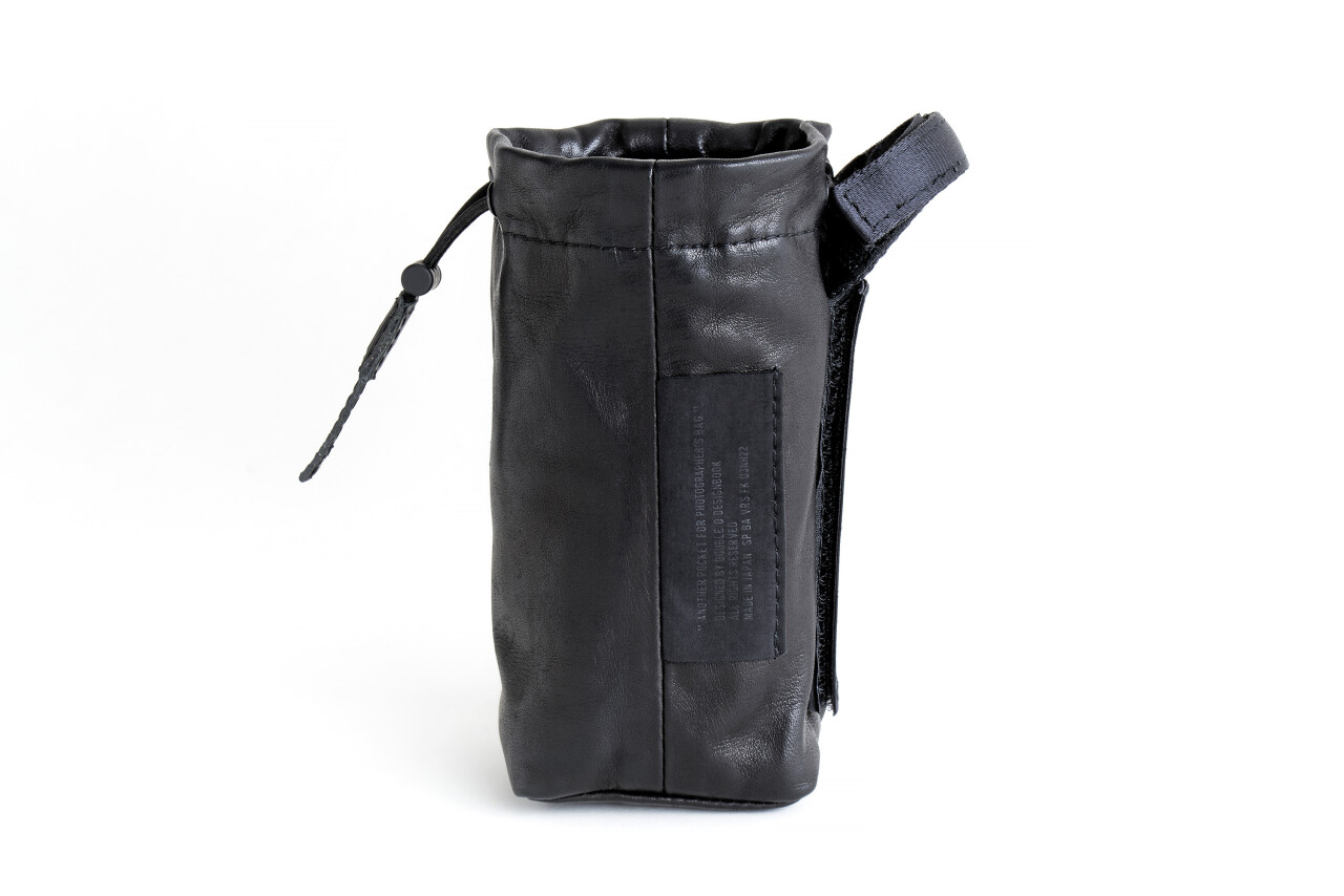 このプロダクトは、フォトグラファーズバッグの拡張アイテムとしてデザインしました。巾着タイプにもフラップタイプにも取り付けられる仕組みになっています。