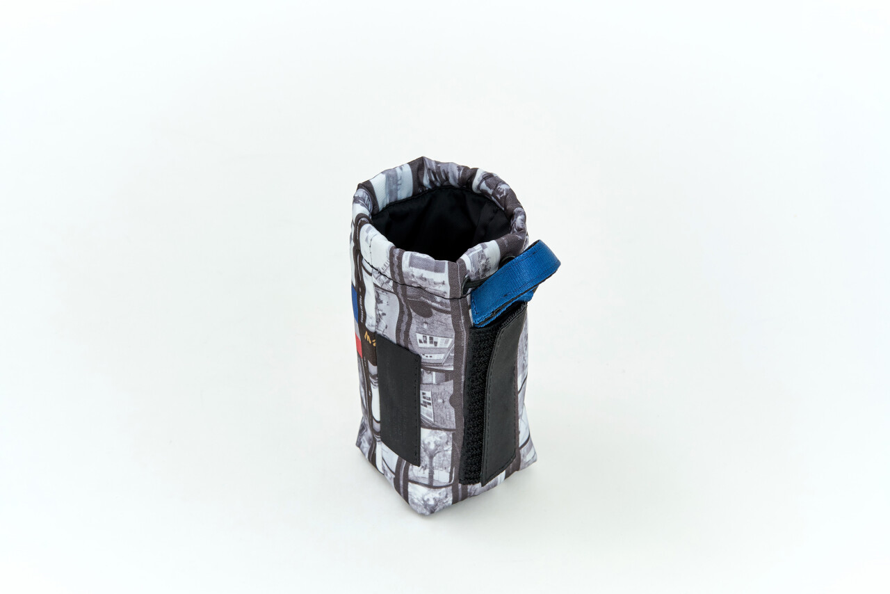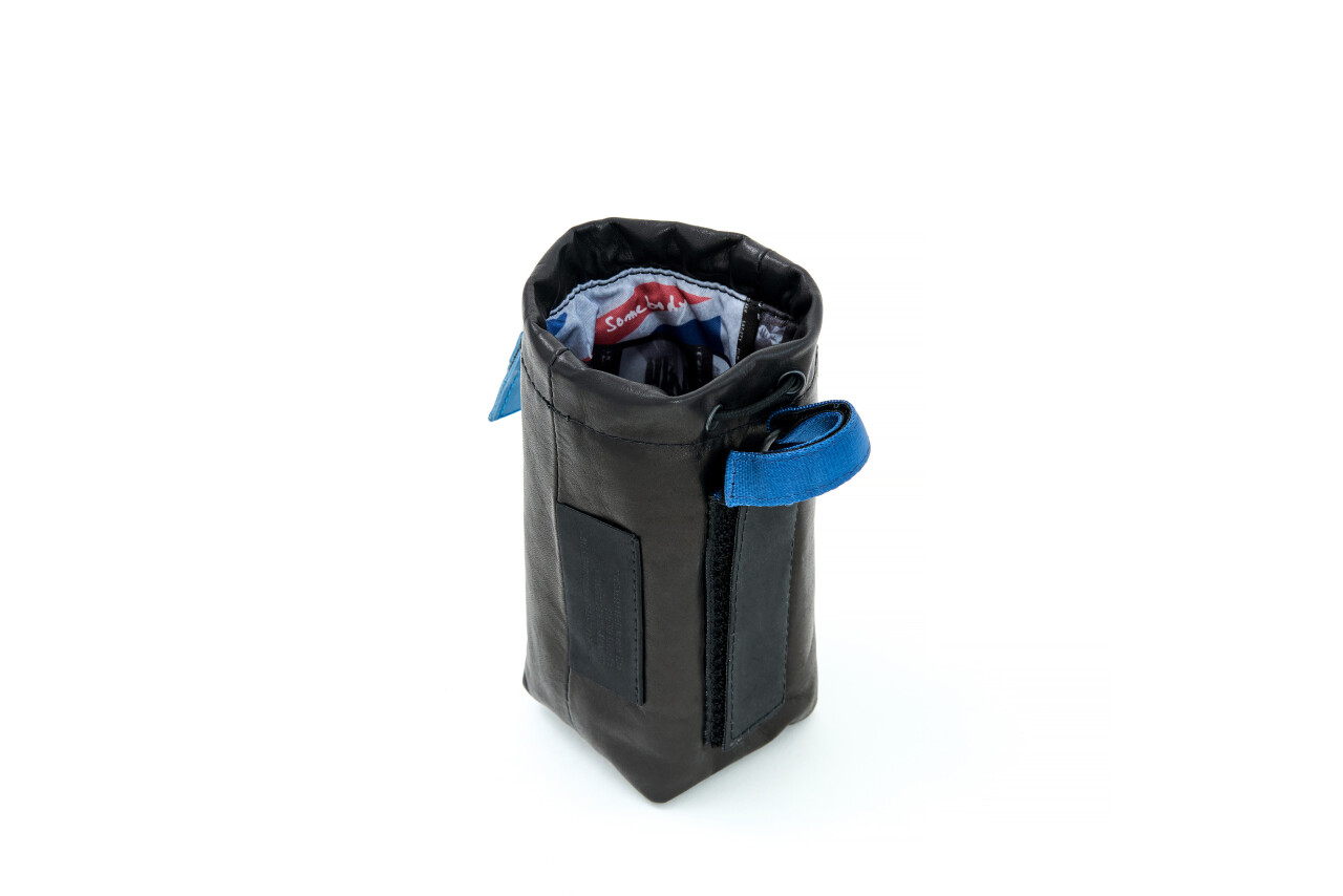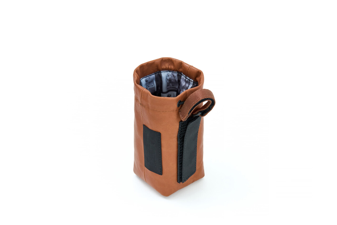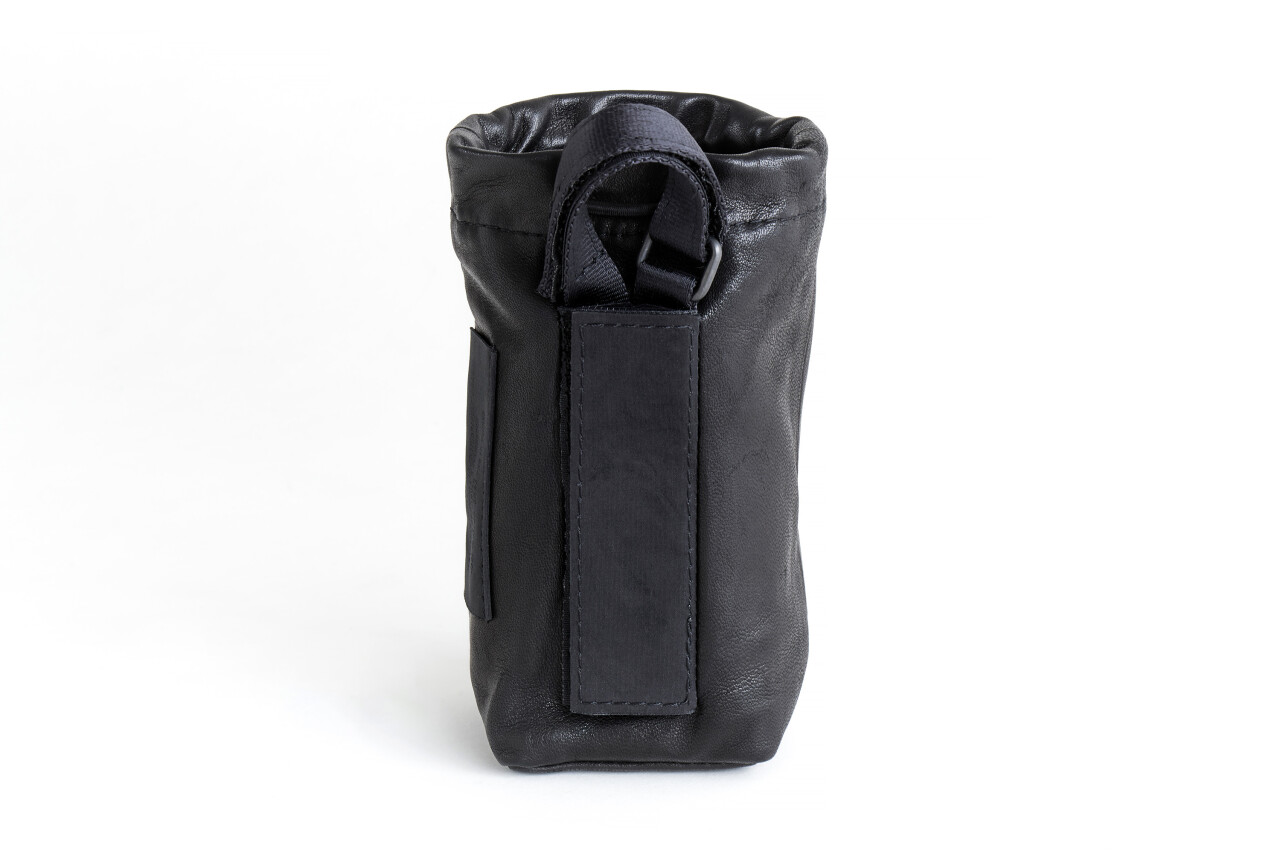 このプロダクトは、フォトグラファーズバッグの拡張アイテムとしてデザインしました。巾着タイプにもフラップタイプにも取り付けられる仕組みになっています。