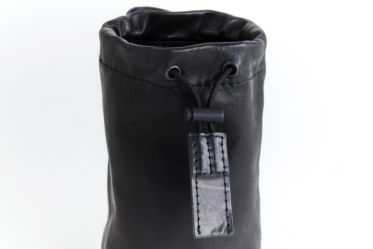 開口を一本の紐で締め切るスタイルになります。最初は少し硬いかもしれませんが、レザーの繊維がほぐれる様に使い続ける中で柔らかく変化していきます。