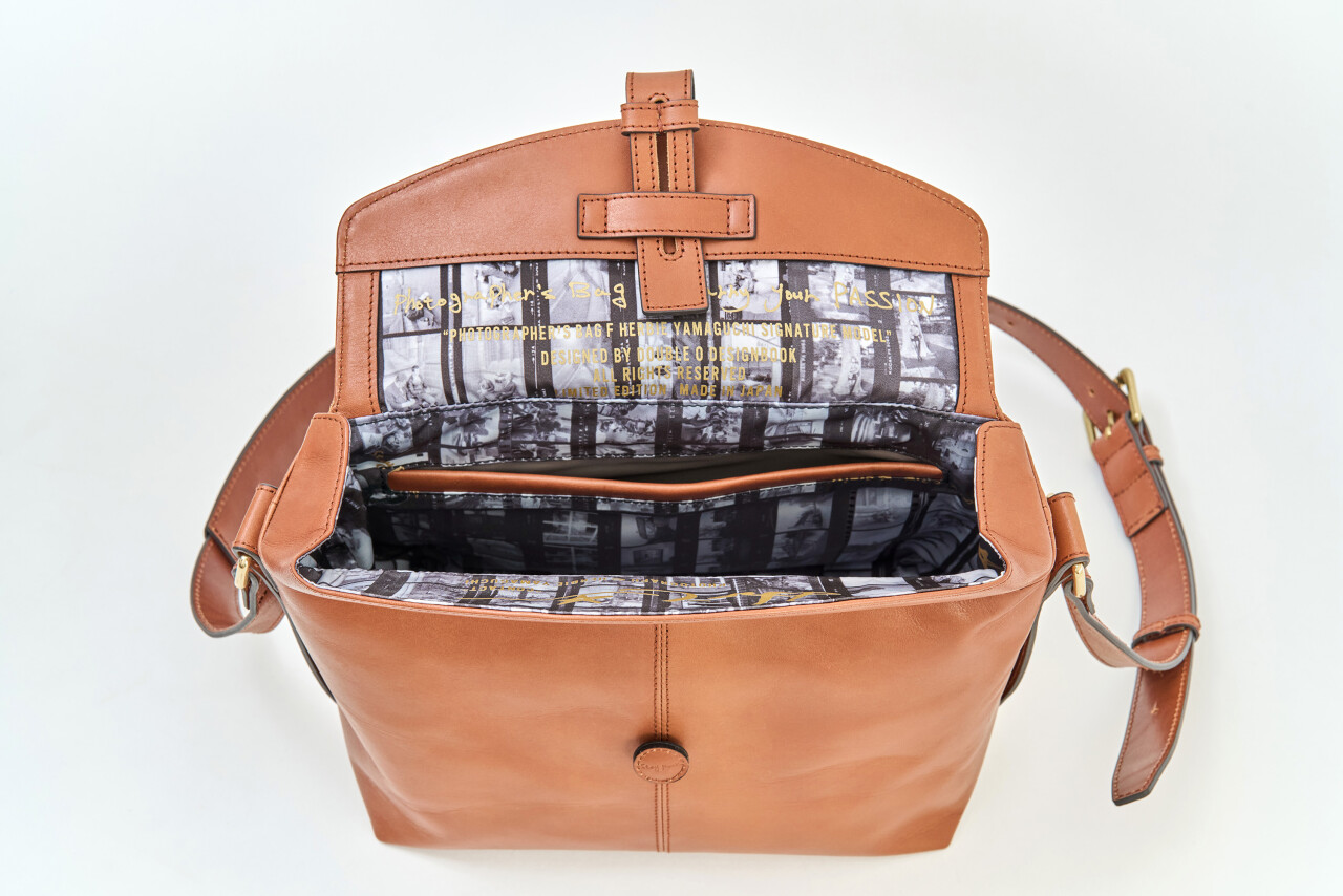 「フォトグラファーズバッグF」レッドキャメル×素地研磨ブラス