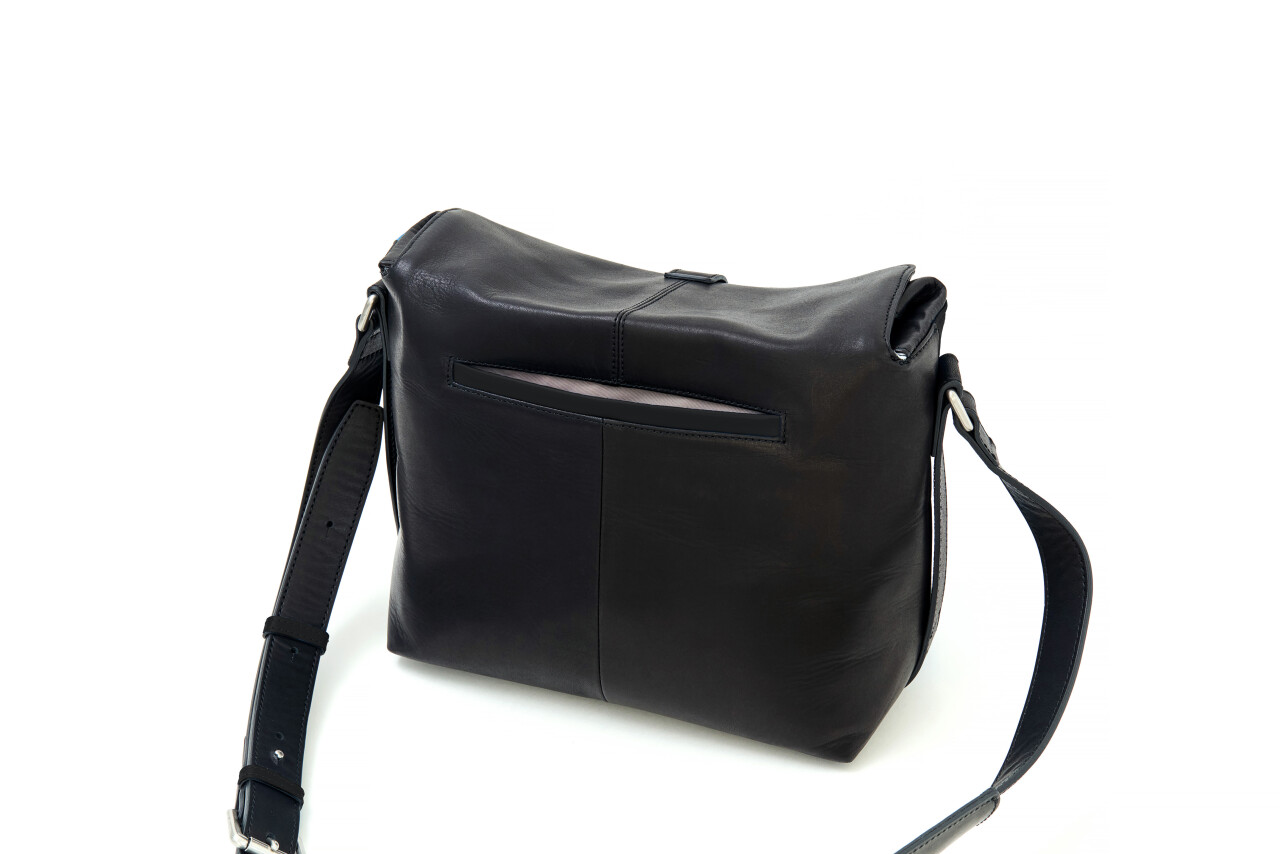 ブラックレザーのバッグ背面写真