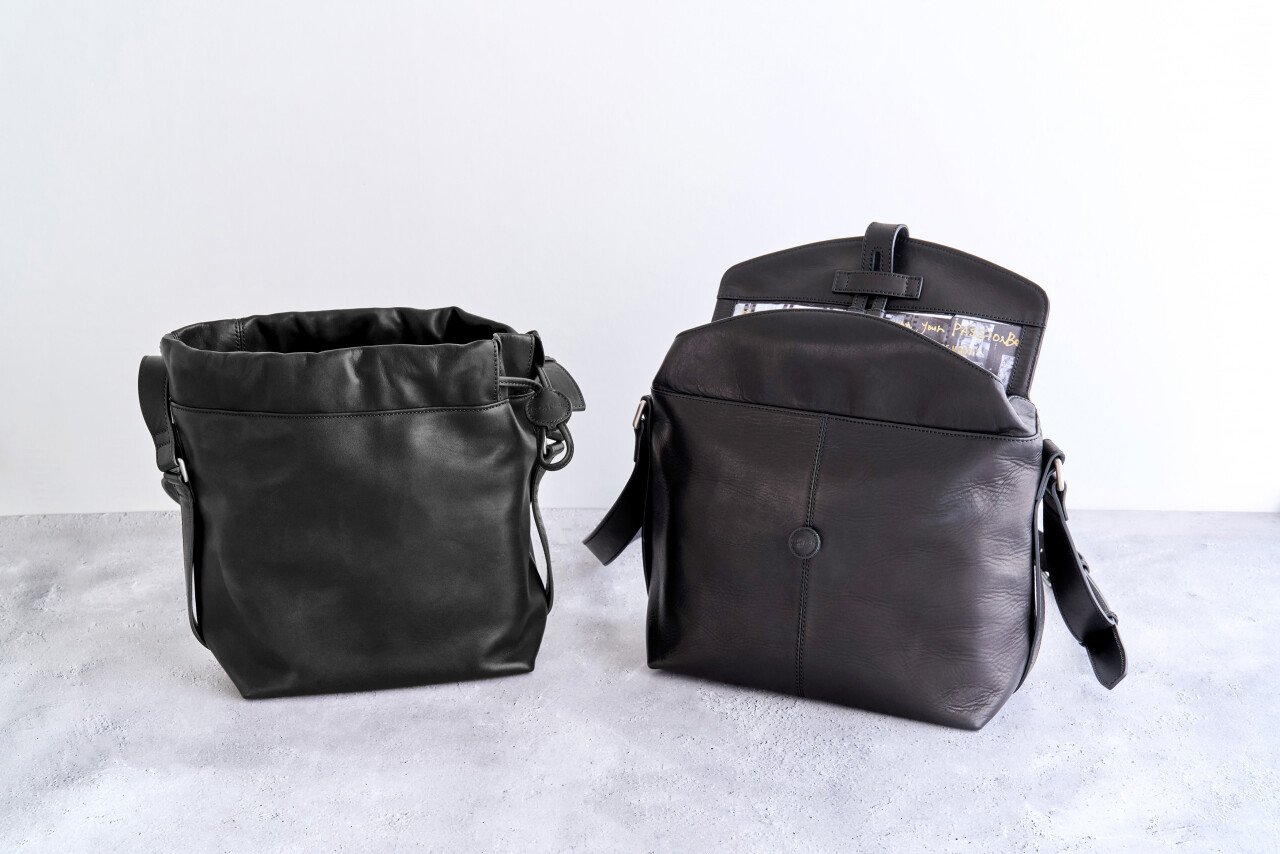 なお、この2タイプはまったく異なるスタイルのバッグであるため、サイズ表記を統一することができませんでした。写真で「オープン」と「クローズ」のそれぞれの状態をご確認いただければと思います。