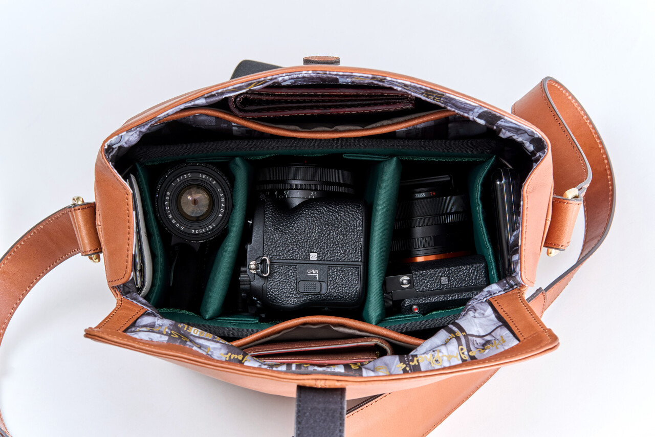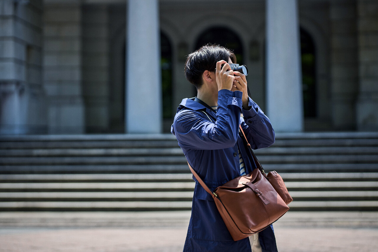 前作のフォトグラファーズバッグは、ハービーさんがお使いの「ライカ M10-P+ノクティルックス 50mm F1.0」が無理なく収まるサイズを基本設計としていました。